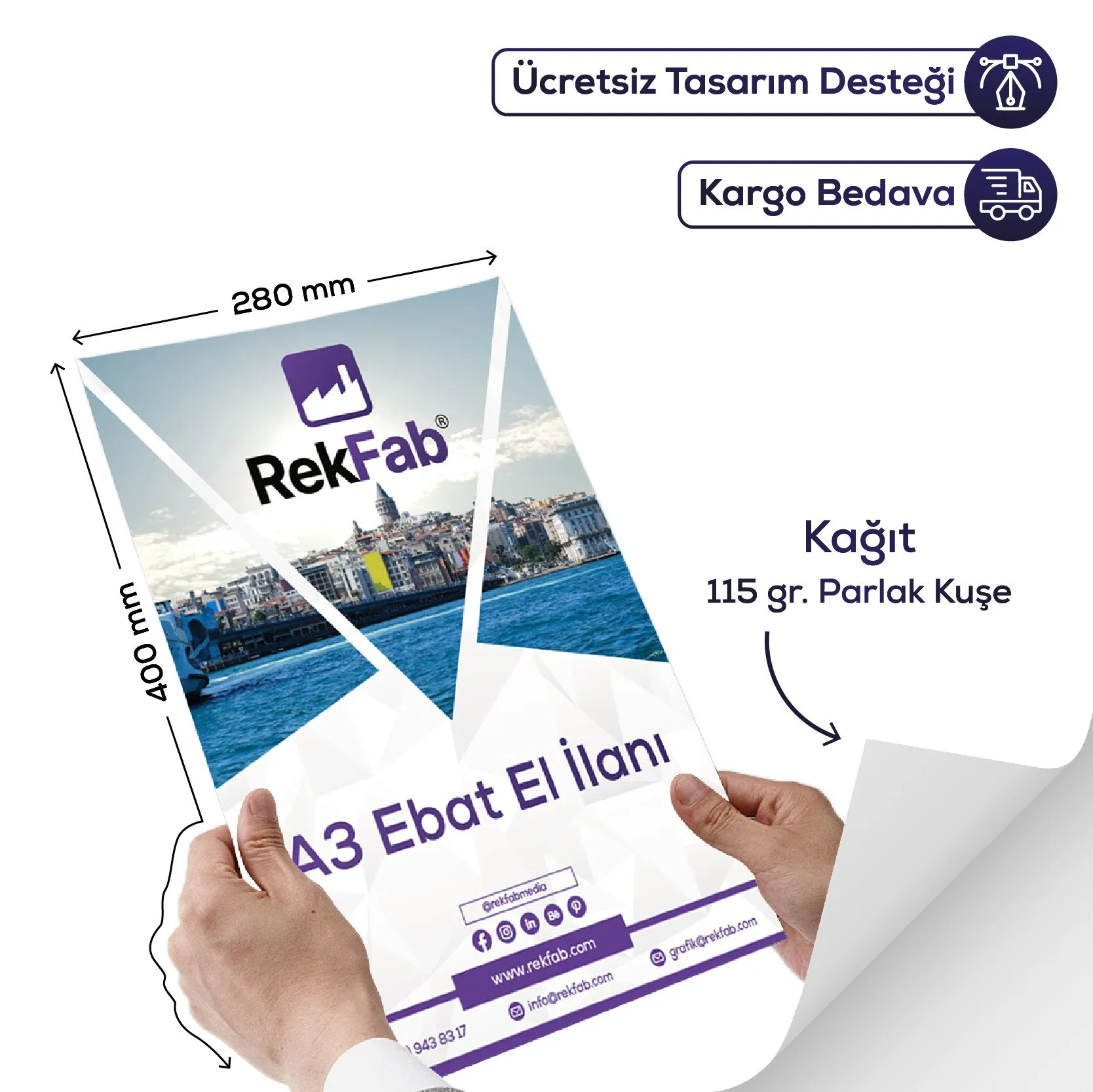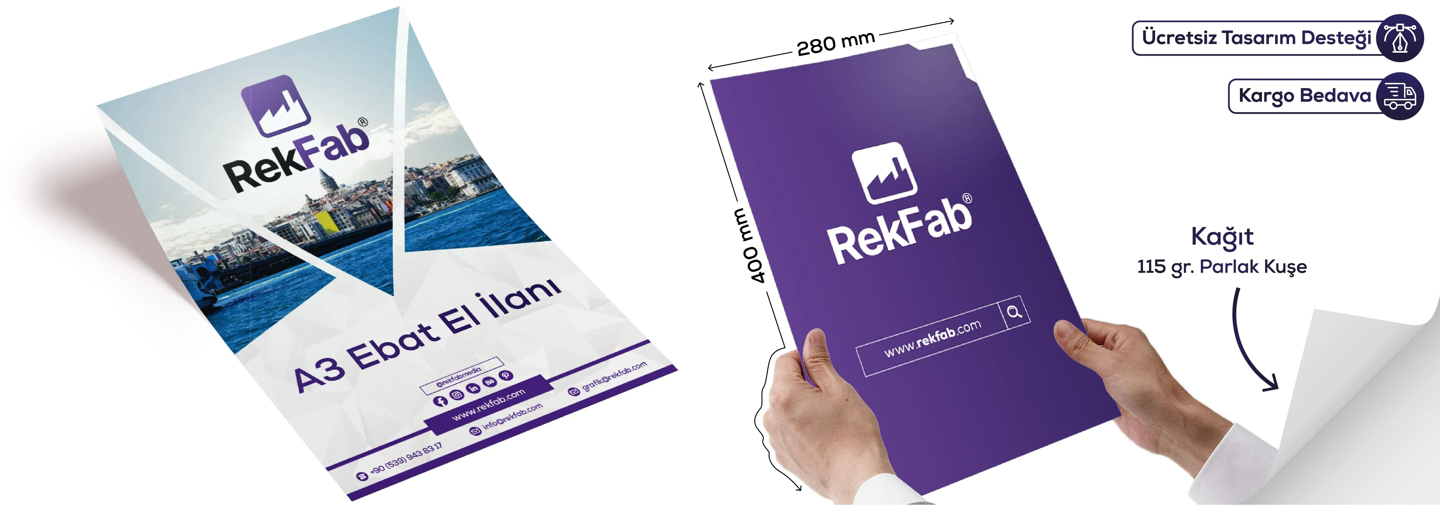 El ilanları diğer reklam araçlarına oranla daha ekonomik ve pratik bir reklam materyalidir. A3 Ebat El ilanı, firmanızın daha profesyonel ve uzman görünmesine katkıda bulunur.